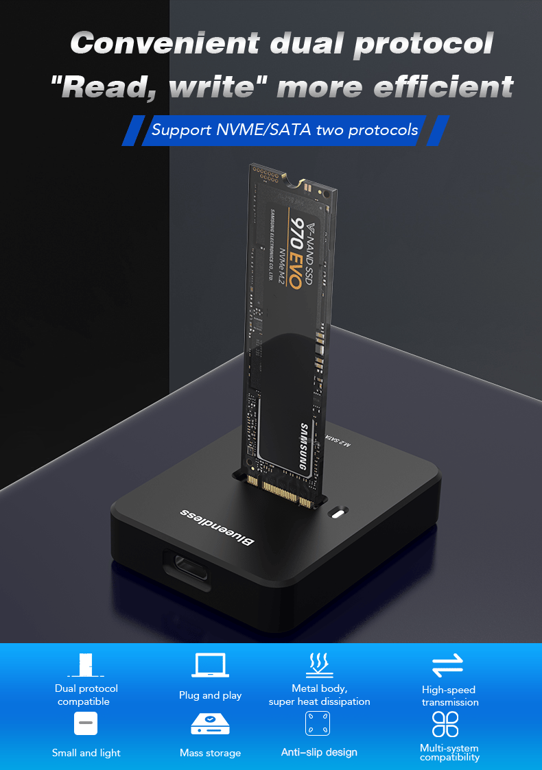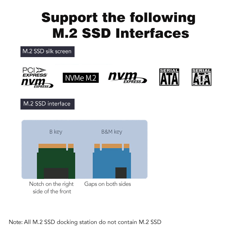 - Supports both M.2 NVMe and M.2 SATA